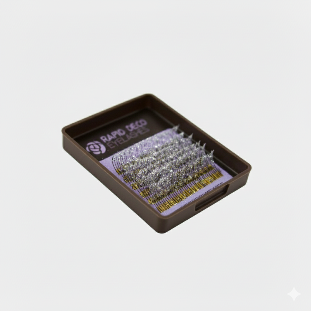 Refresh availabilityDecorated eyelashes extensions with glitter. Each tray contains 6 rows with different lengths. This Eyelash extensions will give a different look to each of your eyelash extension designs.