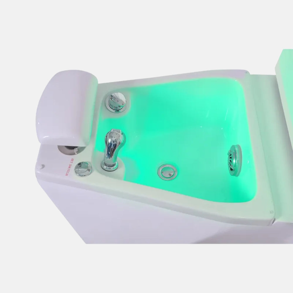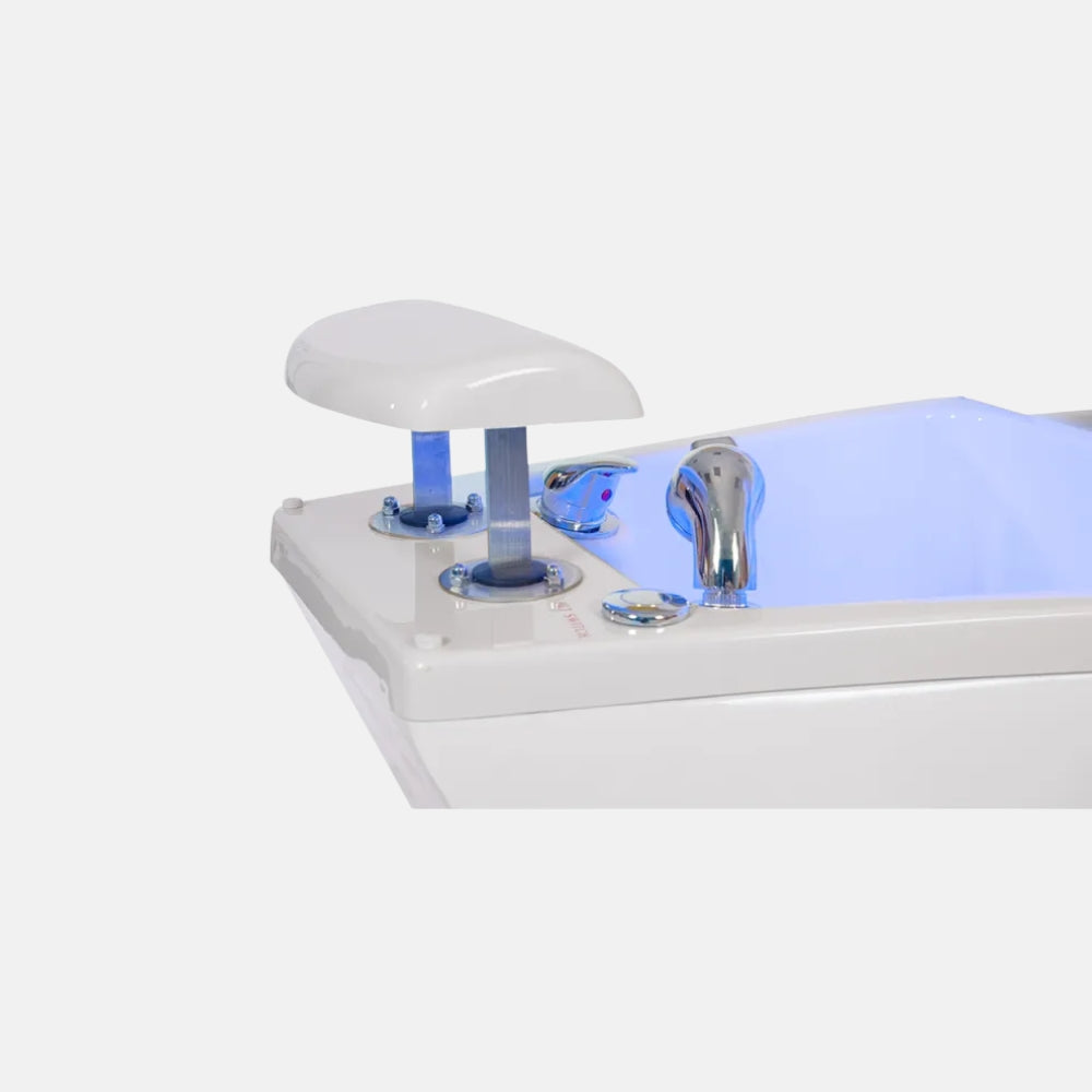 Il comprend une baignoire de pieds avec hydromassage, une douchette manuelle et un éclairage LED intégré, pour transformer chaque séance en un moment de détente totale. Le repose-pieds réglable manuellement permet d’adapter la posture à différentes techniques de pédicure.