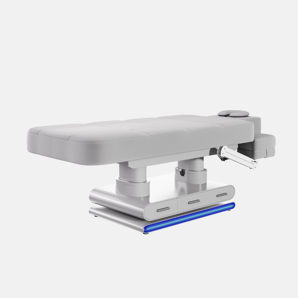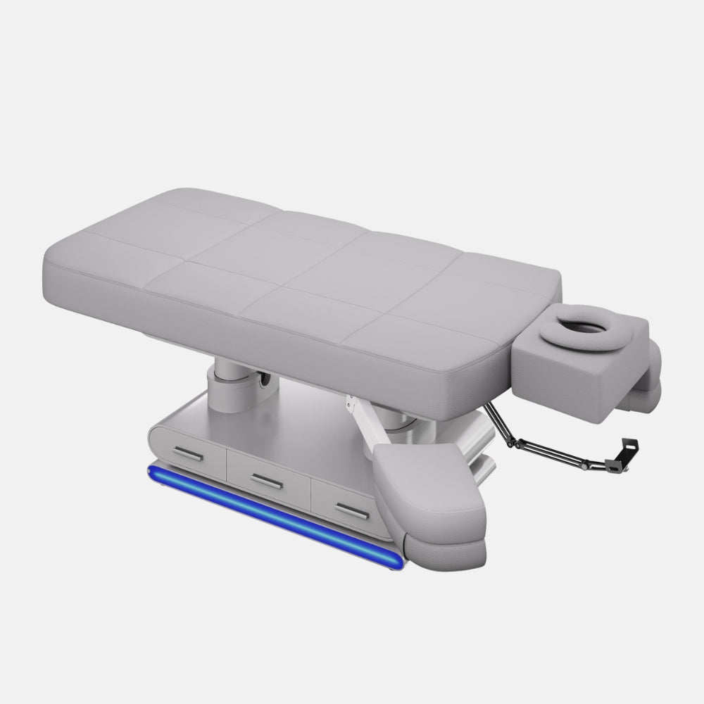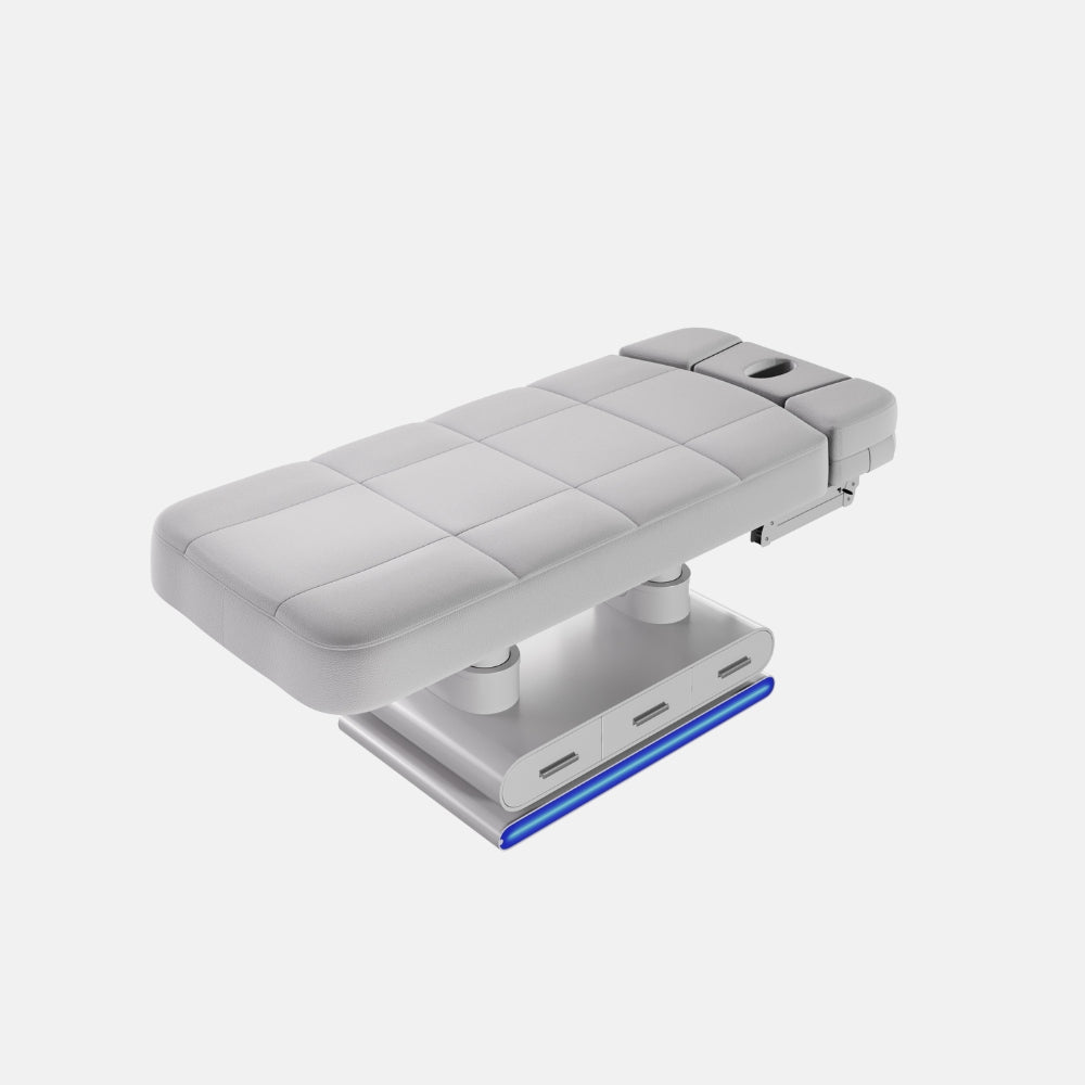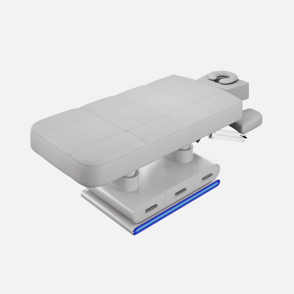 Aggiorna disponibilitàIl lettino Luminy rappresenta l'eccellenza per spa, centri benessere, saloni estetici e studi di massaggio. Progettato per offrire un'esperienza di lusso sia al cliente che al professionista, unisce funzionalità avanzate, riscaldamento integrato, luce LED e un elegante rivestimento in legno laccato. Dotato di 4 motori elettrici, consente la regolazione indipendente di ogni sezione per adattarsi a qualsiasi trattamento.