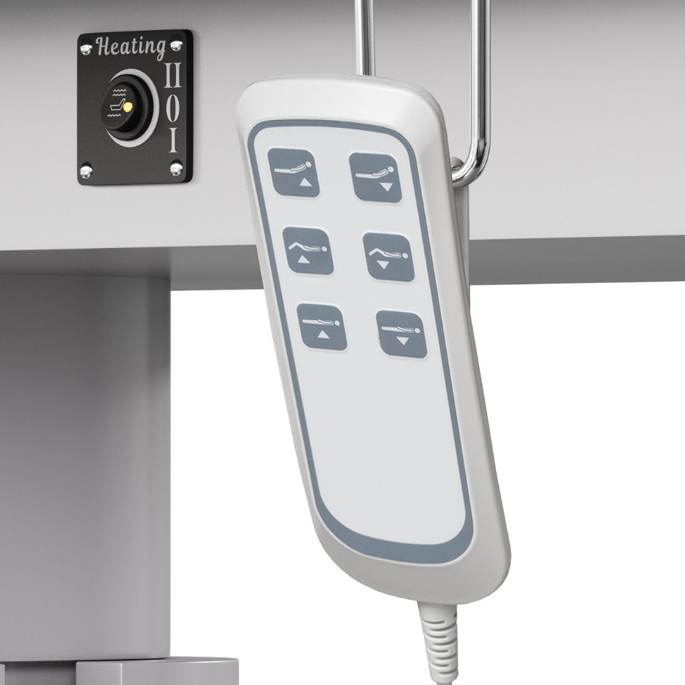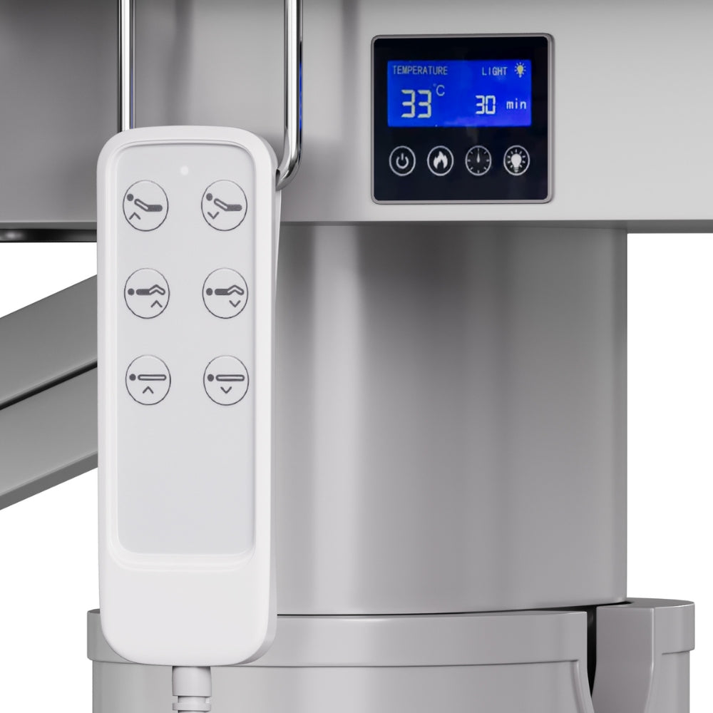 Il controllo avviene tramite comando a filo con icone intuitive, con possibilità di aggiungere un pedale (opzionale). Il sistema di riscaldamento a due livelli e il supporto per smartphone integrato completano l'esperienza di benessere totale. L’illuminazione LED alla base e la larghezza di 83 cm rendono Luminy un lettino all’avanguardia in termini di comfort, estetica e funzionalità.