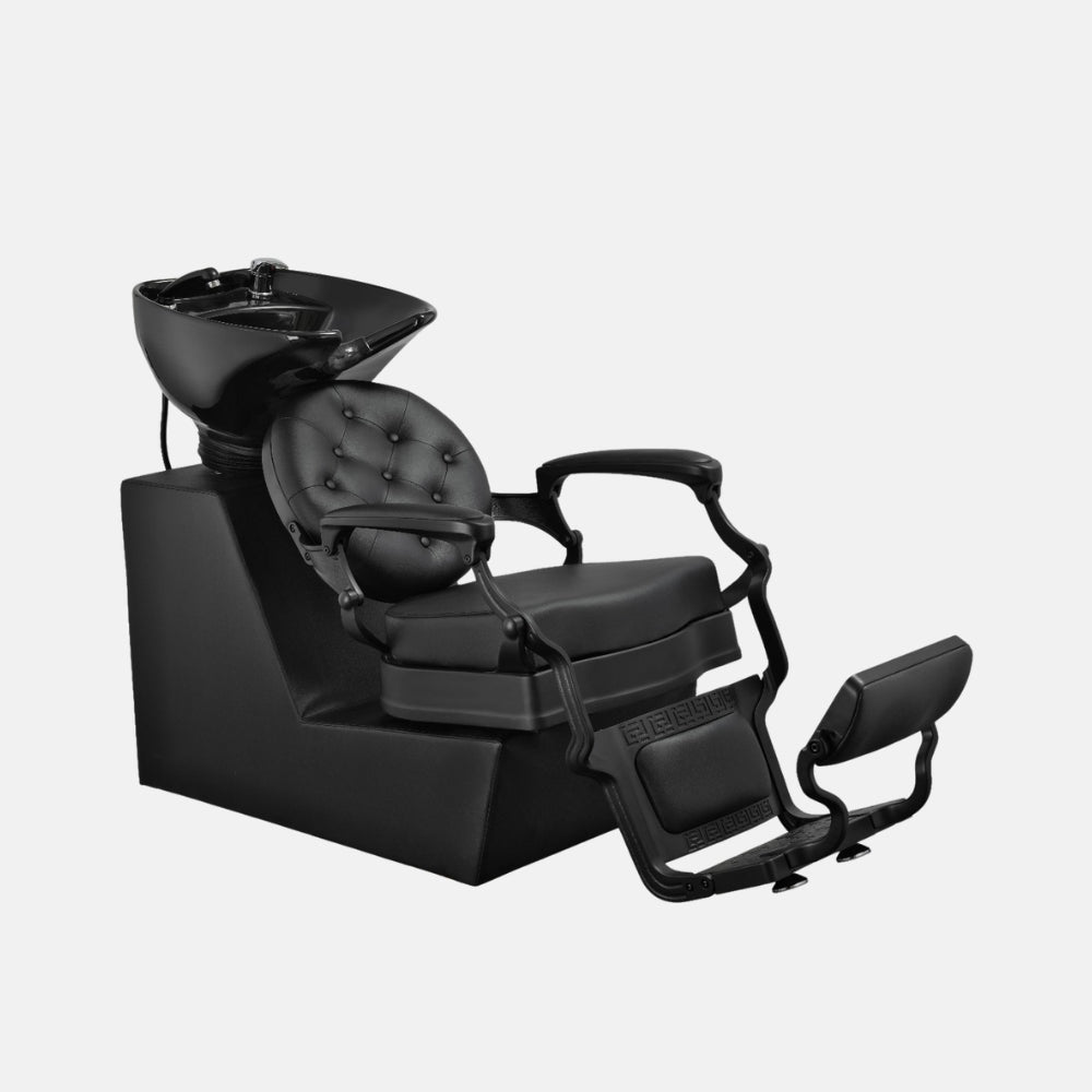 Comfort massimo per cliente e operatore: seduta e schienale imbottiti, schiuma ad alta densità e molle interne che mantengono la forma e prolungano il comfort; la vasca in ceramica nera profonda con sistema inclinabile protegge la zona cervicale del cliente e offre una postura più comoda al professionista.