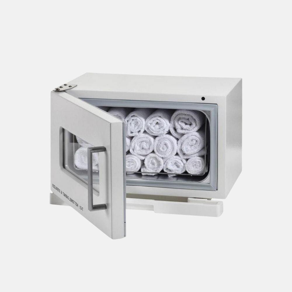 Con una capacidad de 7 litros, permite mantener varias toallas calientes y listas para su uso durante toda la jornada. Está equipado con una lámpara UV integrada que elimina gérmenes y bacterias, asegurando que las toallas se conserven en condiciones higiénicas óptimas.