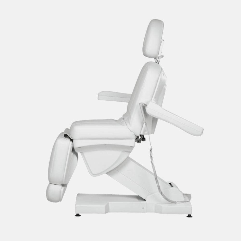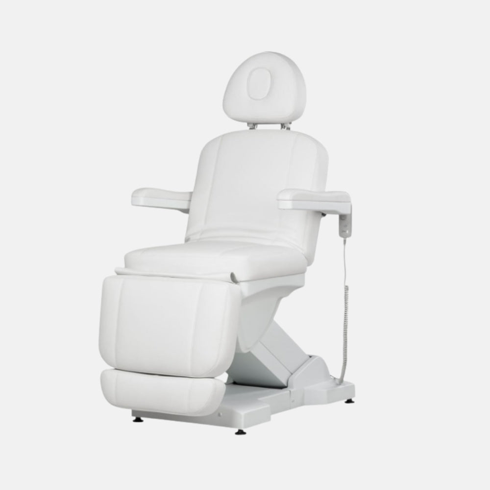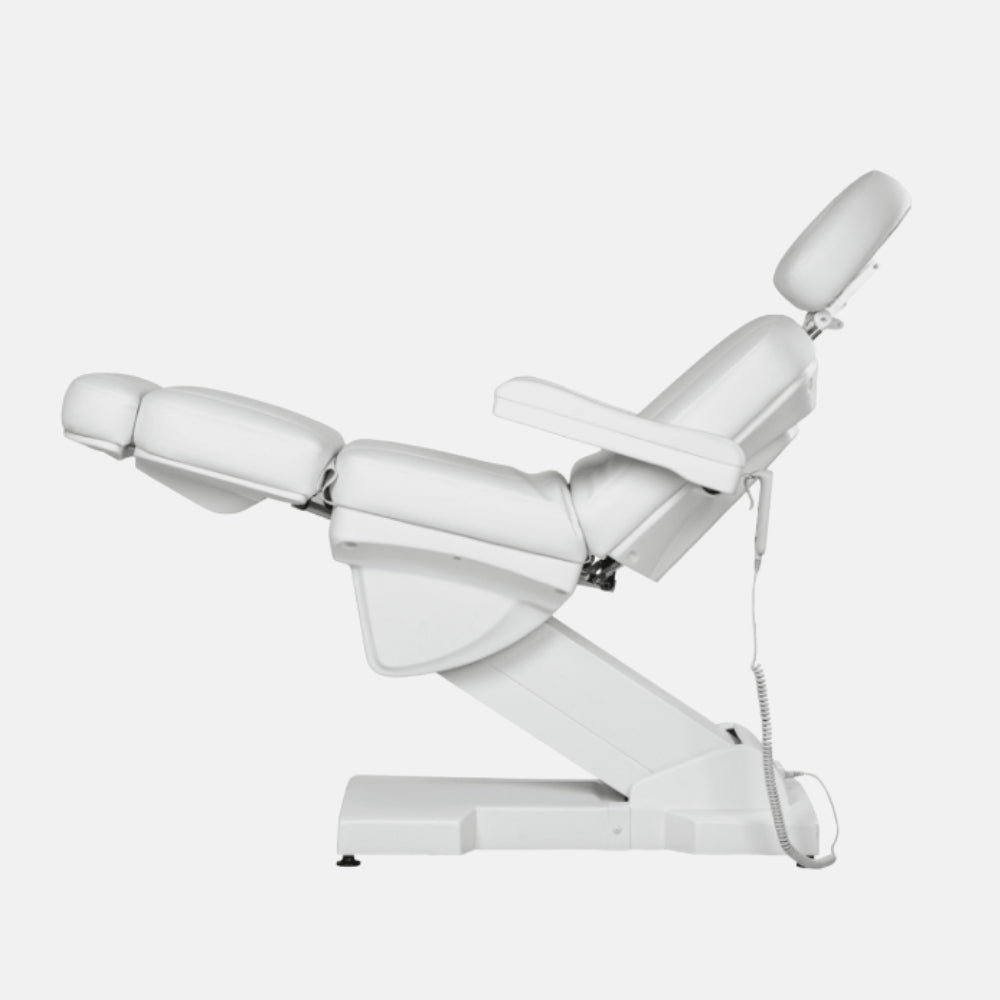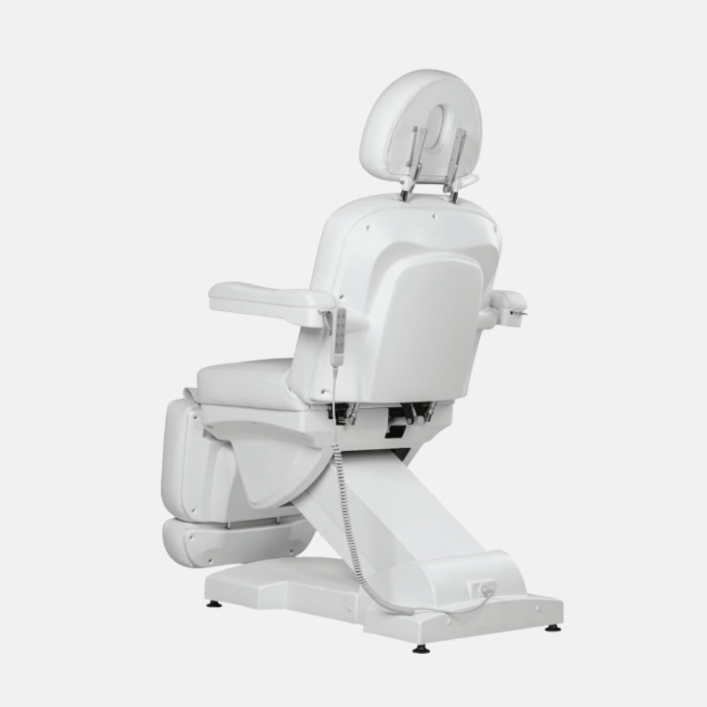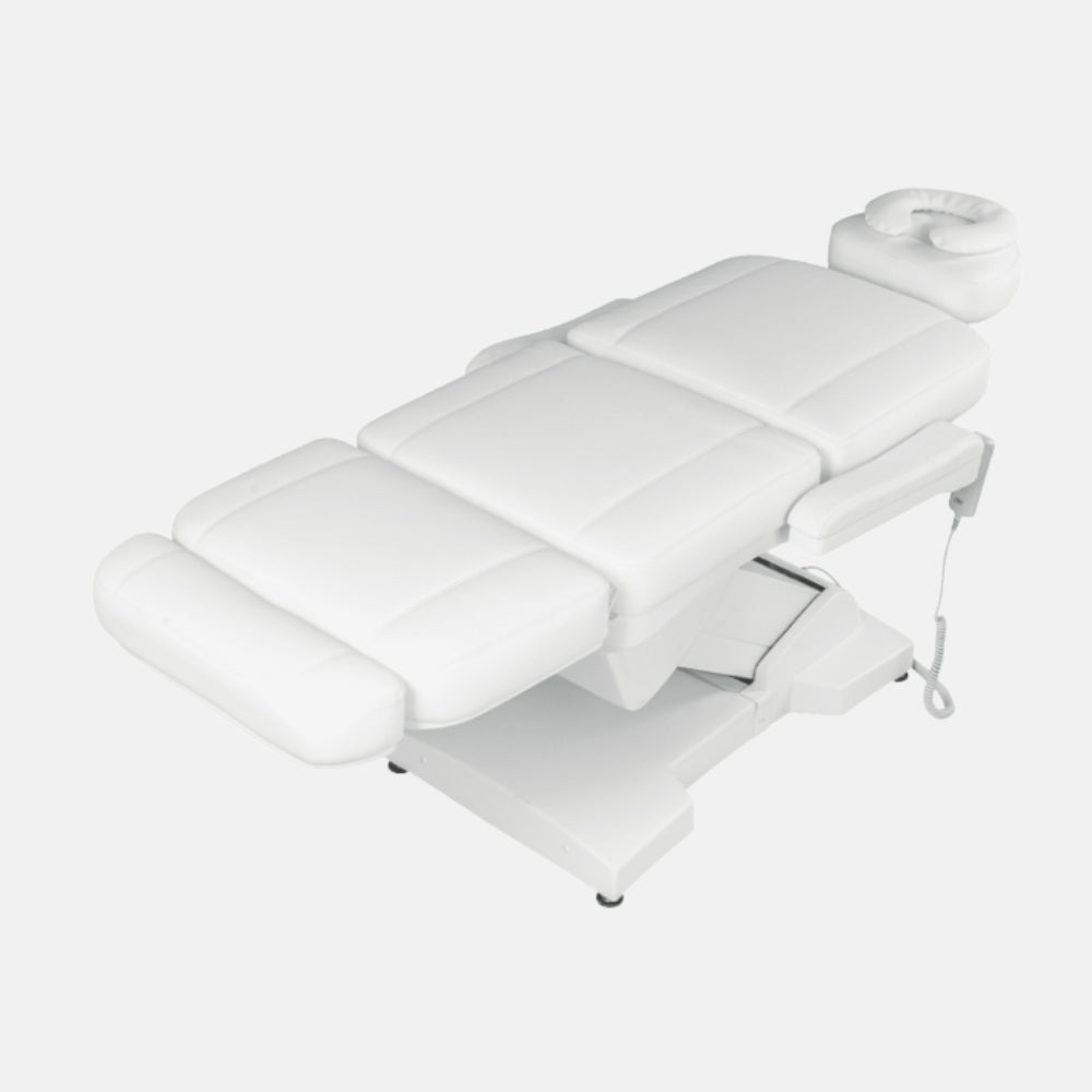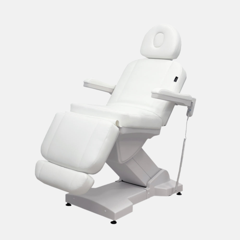 Actualizar disponibilidadLa camilla Cristina está diseñada para profesionales de estética y centros de bienestar exigentes. Cuenta con cuatro motores eléctricos que permiten ajustar de forma independiente la altura, el respaldo, el reposapiés y el asiento, ofreciendo versatilidad máxima en cada tratamiento. Su estructura metálica robusta garantiza una estabilidad óptima en todas las posiciones, incluso en ajustes extremos. Disponible en acabado blanco o negro con tapizado en polipiel PU.