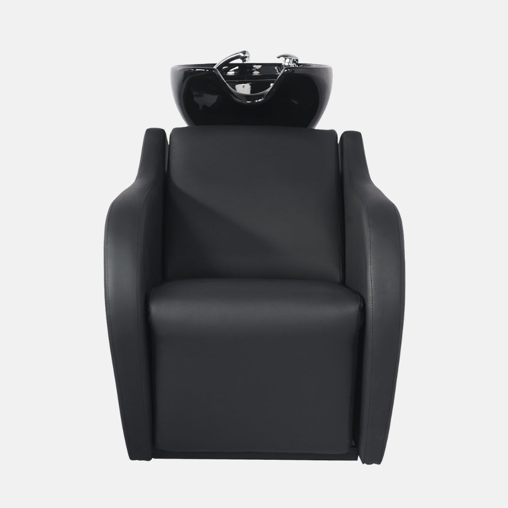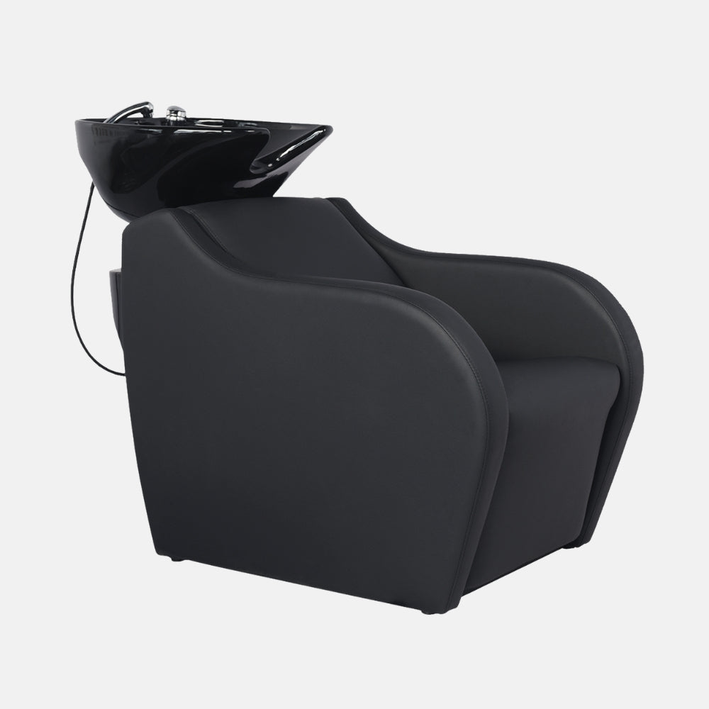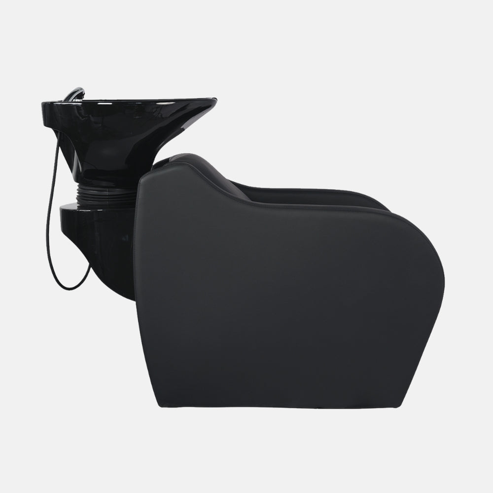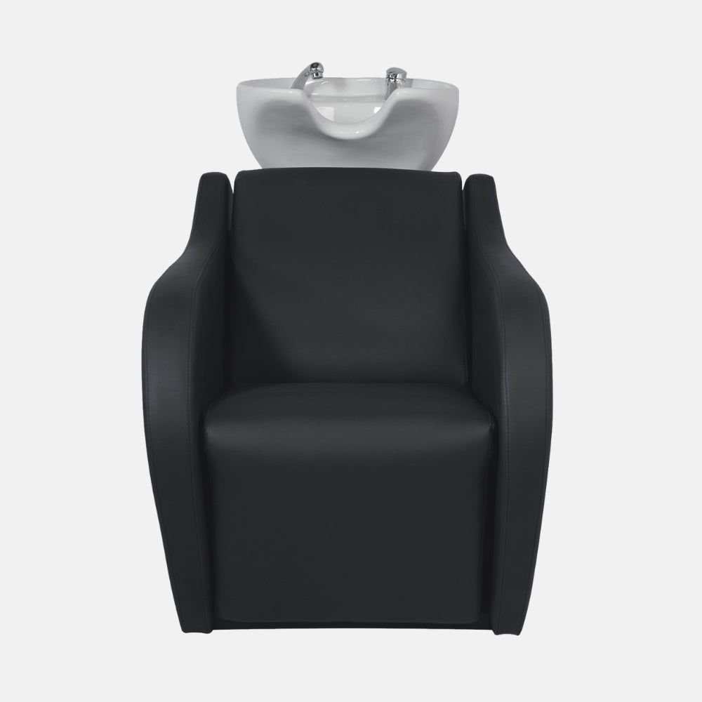 Versatilidad estética: disponible con pica cerámica en blanco o negro para adaptarse a distintos estilos de salón, junto a un tapizado profesional en PVC negro de alta calidad, ideal para entornos exigentes.