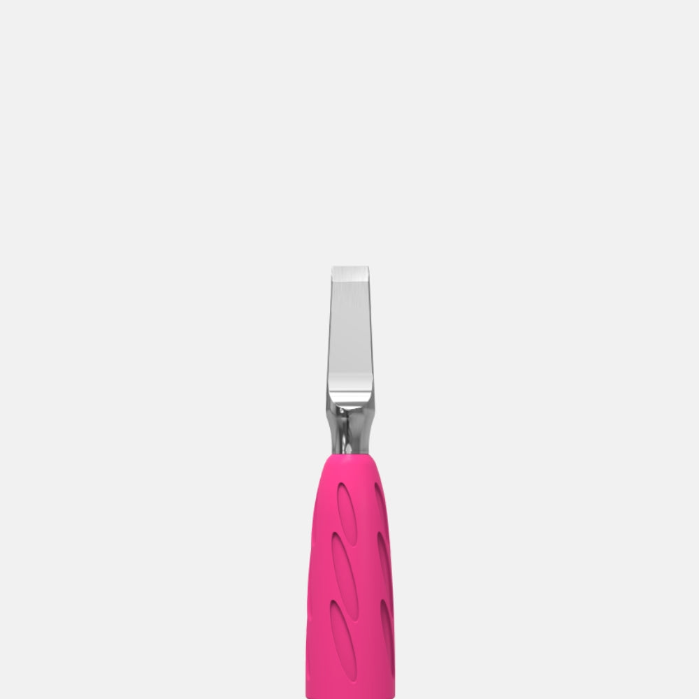 Diseñado para trabajar en los senos ungueales y levantar cutículas duras y gruesas durante manicuras y pedicuras. Su acomodo recto facilita un tratamiento controlado y preciso.