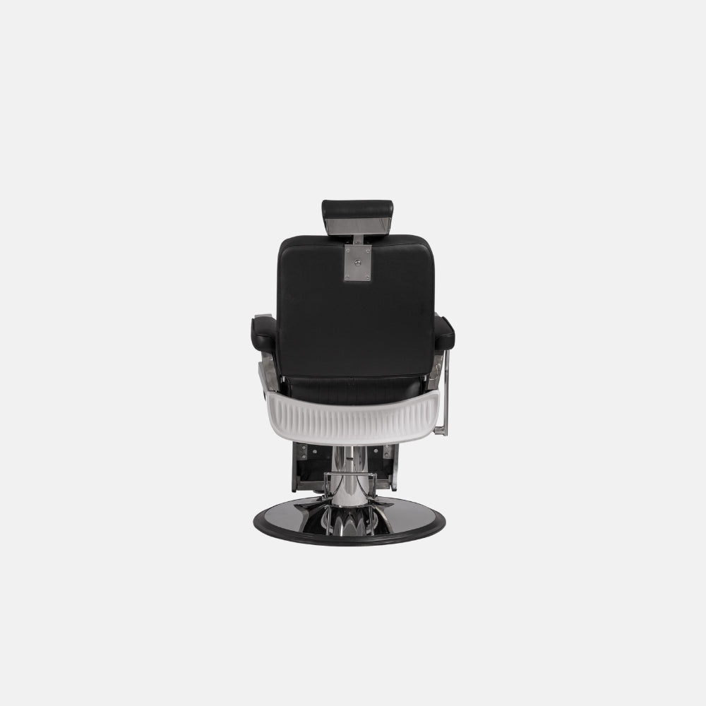 Su asiento de espuma de alta densidad garantiza máxima comodidad, incluso en servicios prolongados, mientras que la base redonda cromada y la bomba hidráulica de alta calidad con freno aseguran estabilidad y regulación precisa en cada uso. El tapizado negro con costuras verticales aporta elegancia y refuerza su estilo retro renovado.