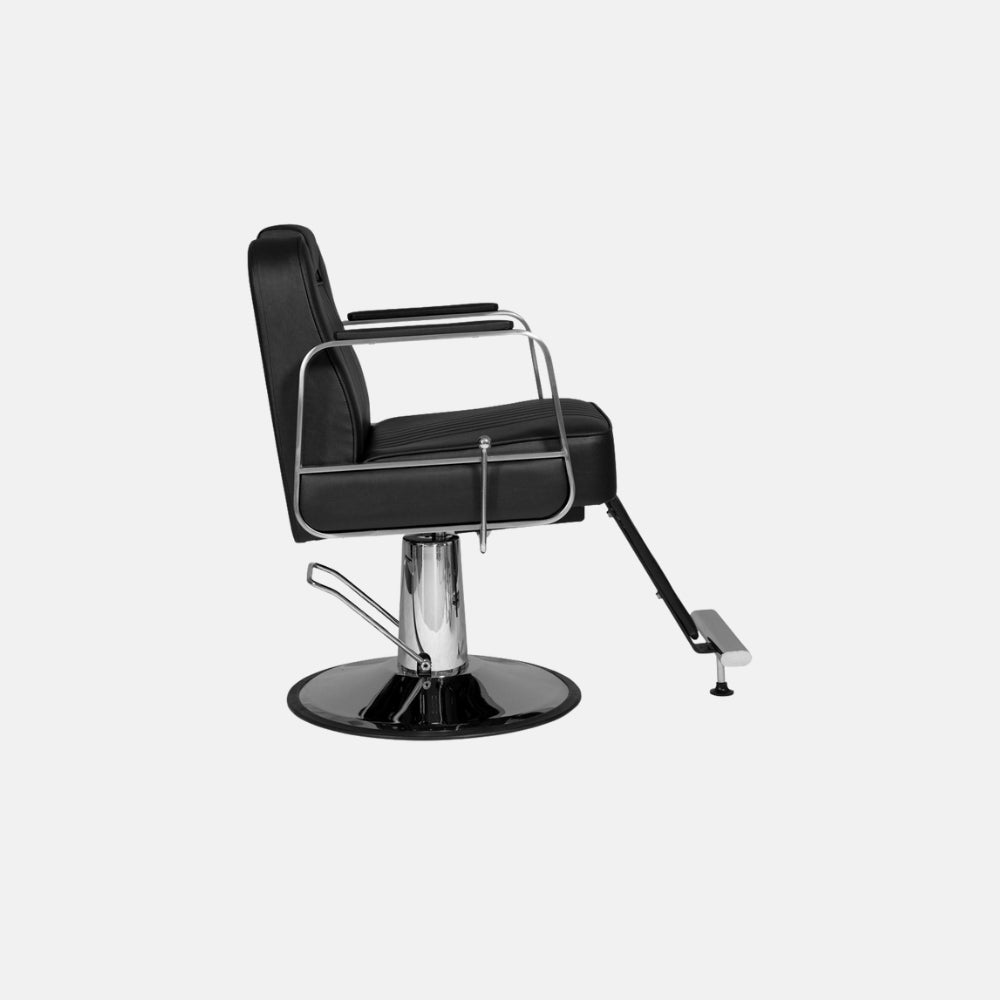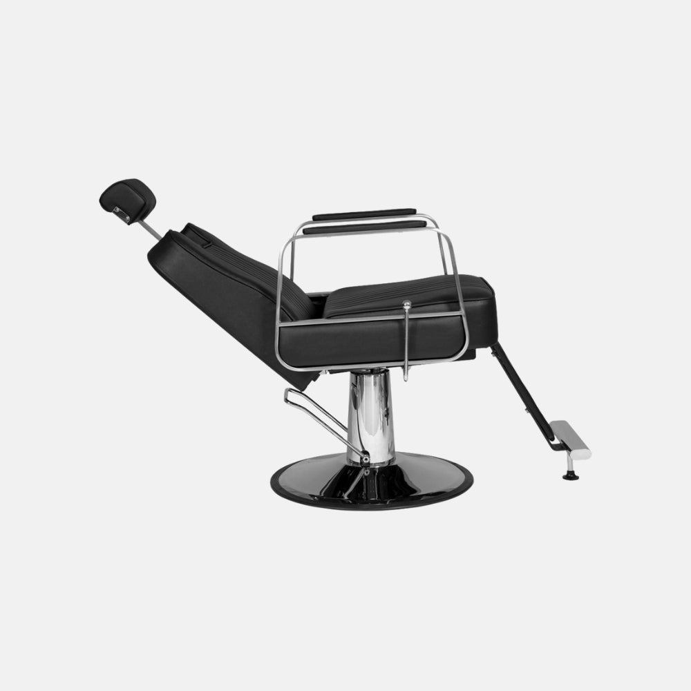 Su asiento con espuma de alta densidad y sistema de muelles proporciona una experiencia ergonómica y cómoda tanto para el cliente como para el profesional. Además, incorpora respaldo y reposapiés reclinables, así como reposacabezas extensible, para adaptarse a todo tipo de servicios de barbería.