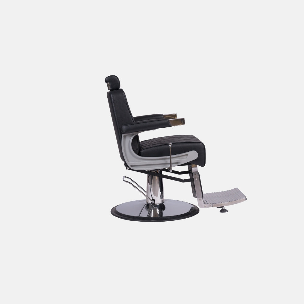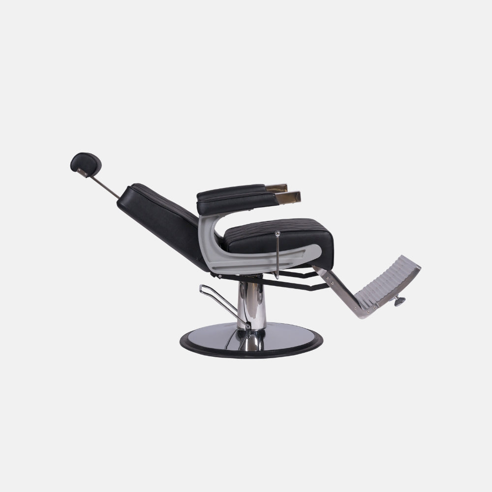 El asiento incorpora espuma de alta densidad con sistema de muelles, asegurando una comodidad excepcional incluso en servicios prolongados. Además, cuenta con respaldo y reposapiés reclinables, así como reposacabezas extensible, para adaptar la postura del cliente con precisión y sin esfuerzo.