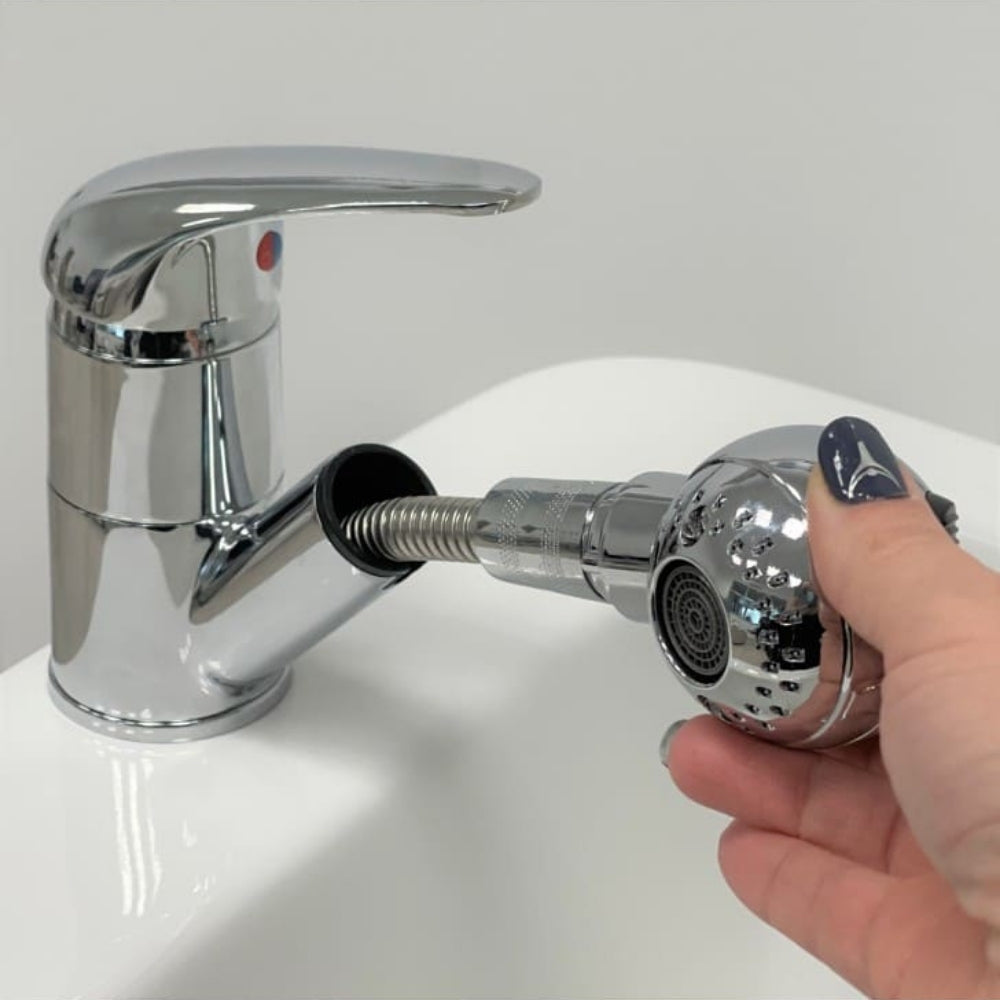 Grifo Monomando con Ducha Extraíble: Fácil de usar, con contrapeso de goma para un retorno sencillo.