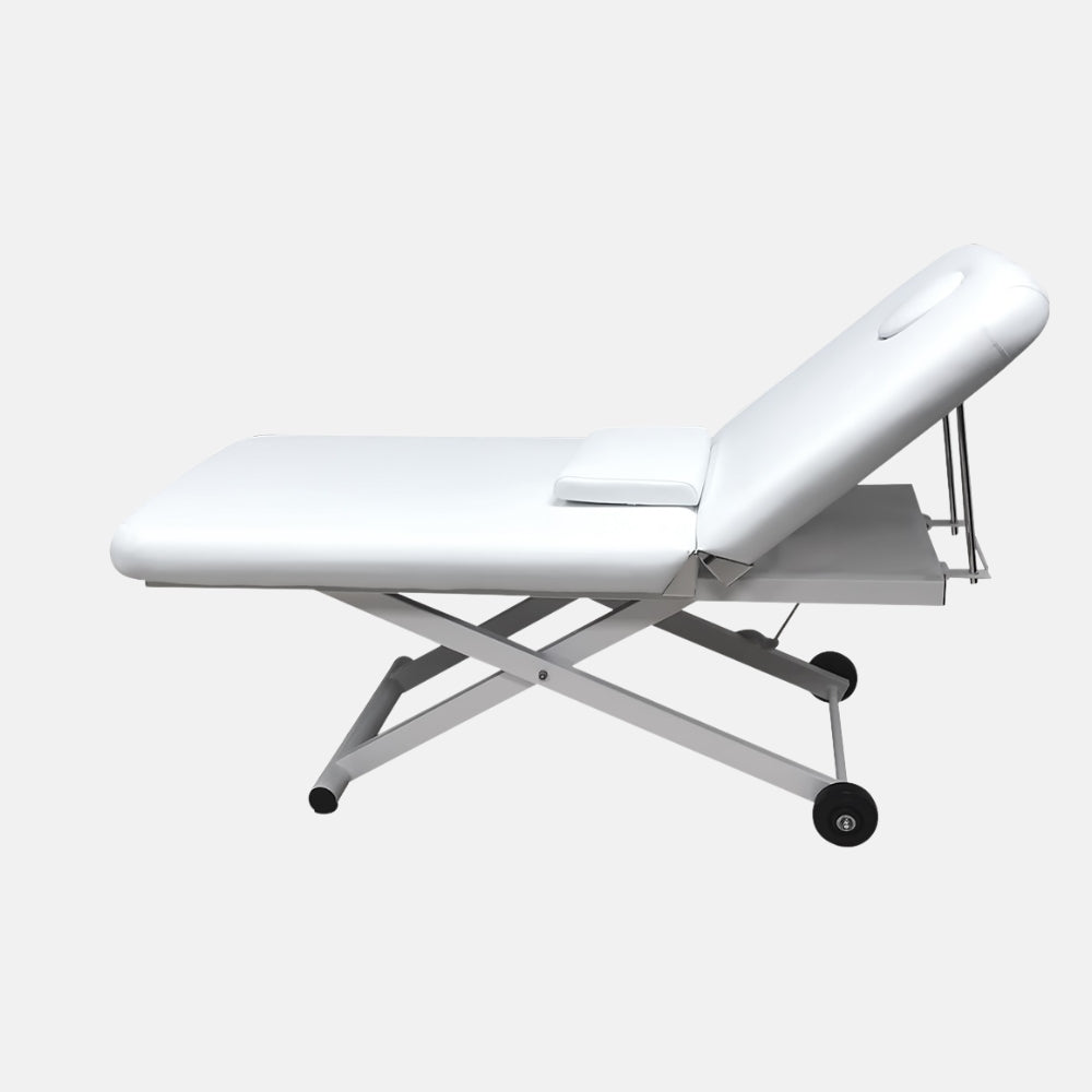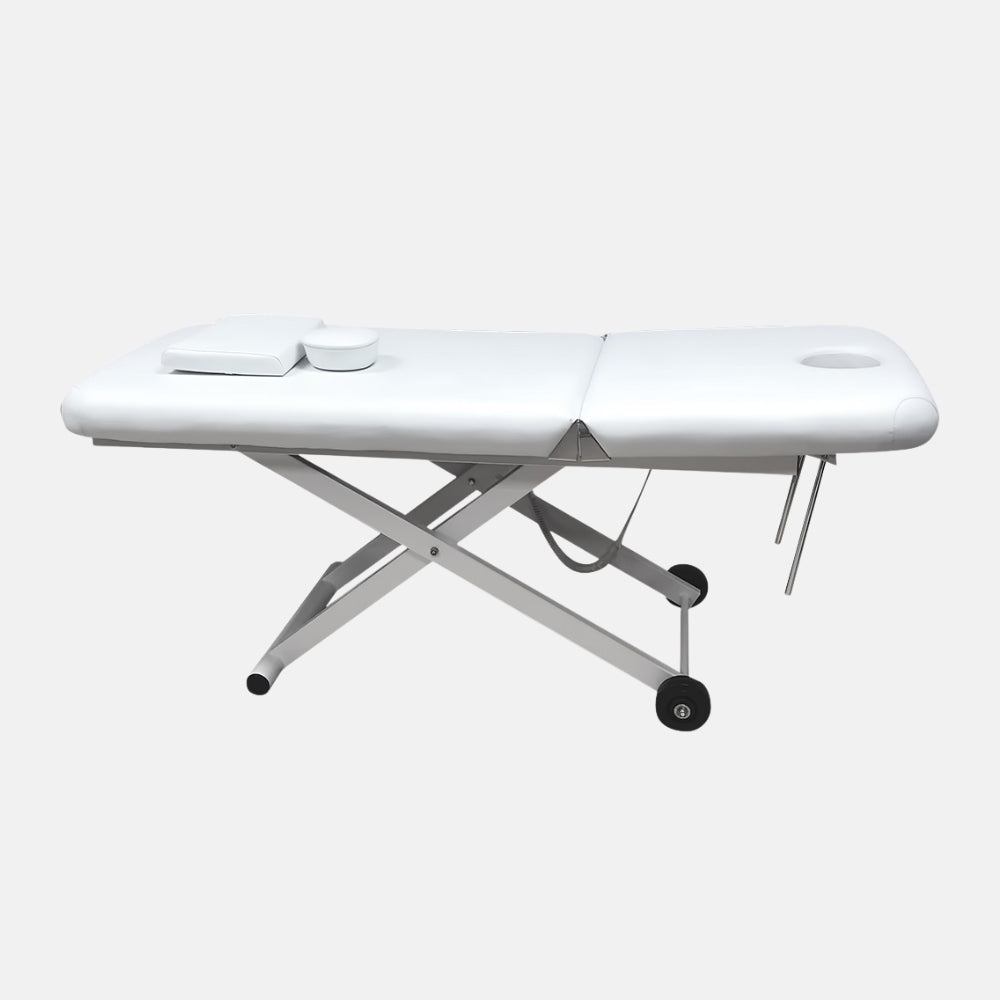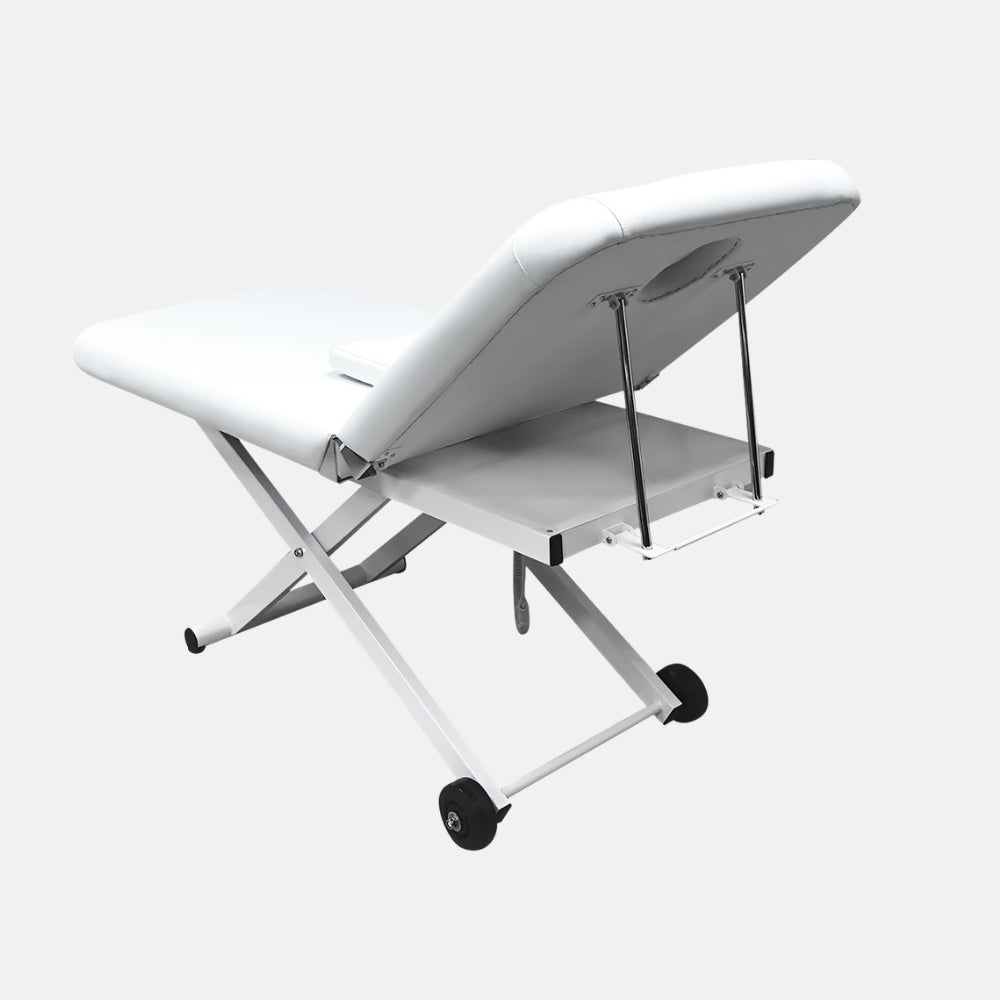 Actualizar disponibilidadA marquesa Wenga combina um design clássico tipo tesoura com funcionalidades profissionais. Equipada com um motor elétrico para ajuste da altura, permite uma regulação entre 66 cm e 92 cm, adaptando-se a diferentes tratamentos e posturas. A estrutura robusta proporciona excelente estabilidade. Inclui pés de borracha para compensar pequenas irregularidades do chão e duas rodas grandes para facilitar a deslocação.