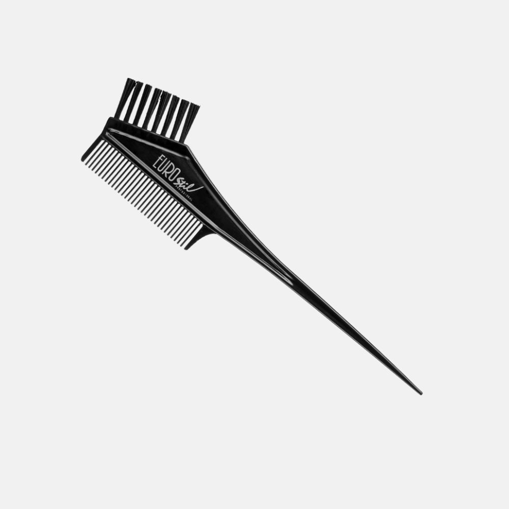 As cerdas sintéticas pretas de alta resistência química garantem uma aplicação controlada, sem deformações, enquanto o pente lateral ajuda a pentear e distribuir o produto da raiz até às pontas. O corpo leve e ergonómico facilita o manuseio preciso, ideal para coloristas que precisam trabalhar com agilidade mantendo um acabamento uniforme.