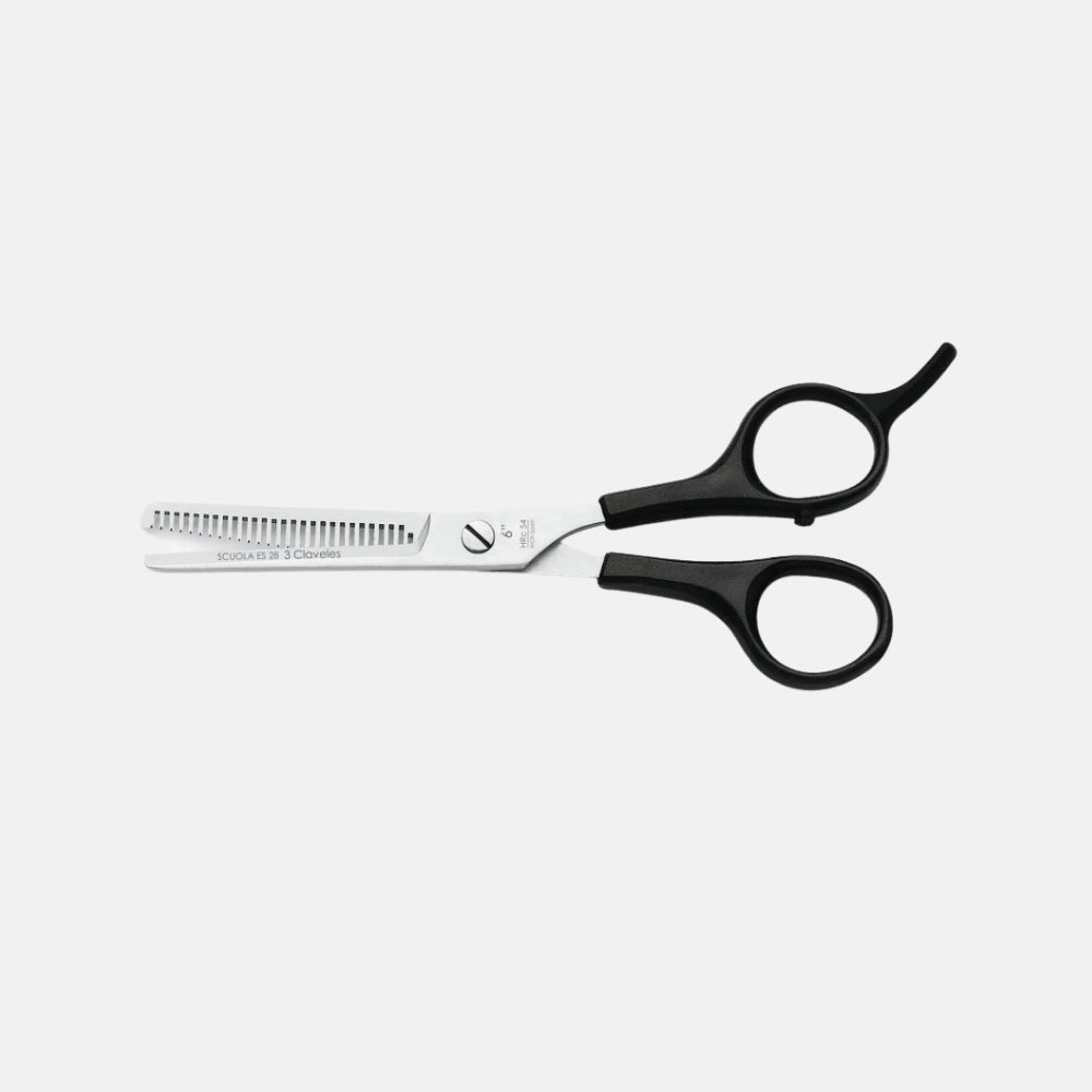 Tesoura de cabeleireiro profissional Scuola com apoio para os dedos ES-28 6" - 3 Claveles
